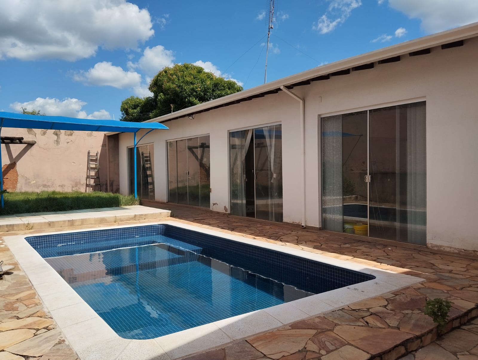 Residência de alto padrão, localizado em área próxima ao centro da cidade de Adamantina, na rua Arno Kieffer, nº 1.027 – Com uma suíte, com closed todo em madeira, 02 quartos com guarda roupas planejados em madeira, sala de TV e sala de visitas, copa e cozinha planejada, lavanderia coberta, lavabo, despensa, área gourmet com churrasqueira e forno, com duas salas para eventos, 3 banheiros, garagem para dois veículos, com portão eletrônico; Piscina de grande porte;
